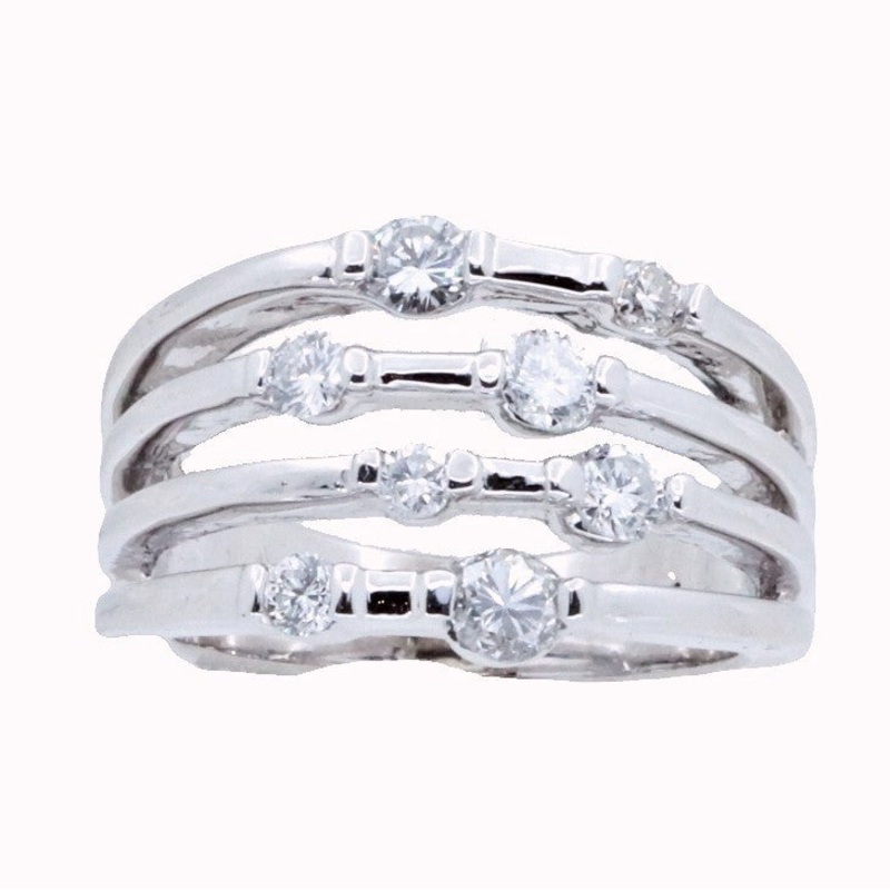 18K white gold ring with 4 open air rows with diamonds 0.90cttw