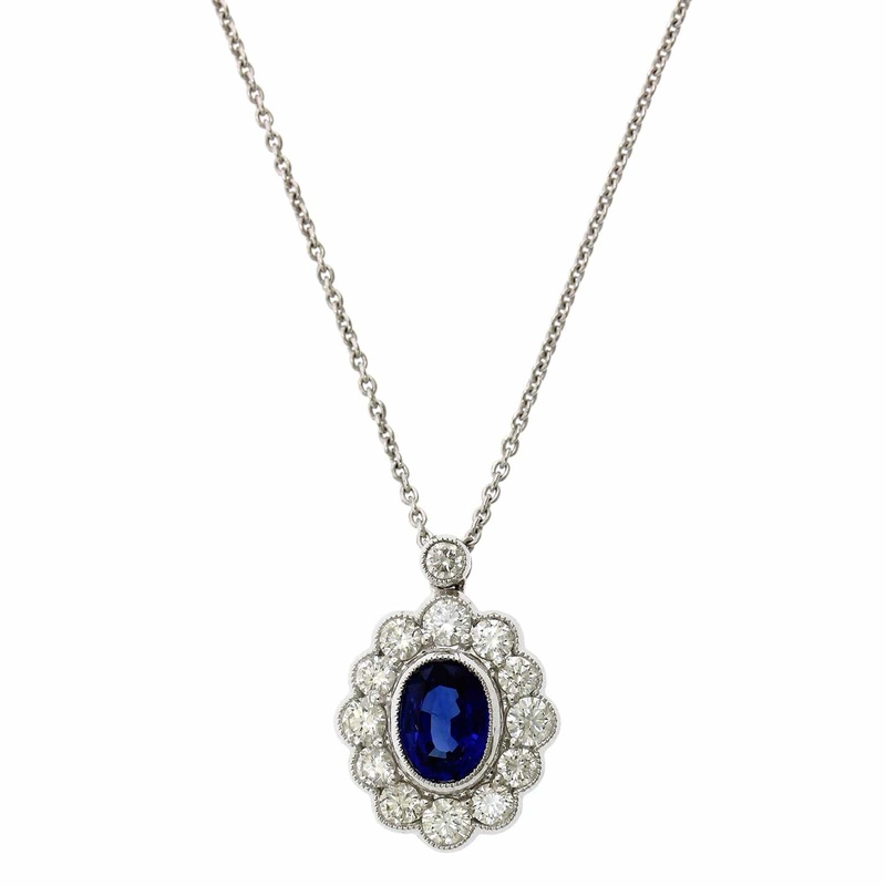 S99320462518K White Gold Oval Sapphire Vintage Style Pendant