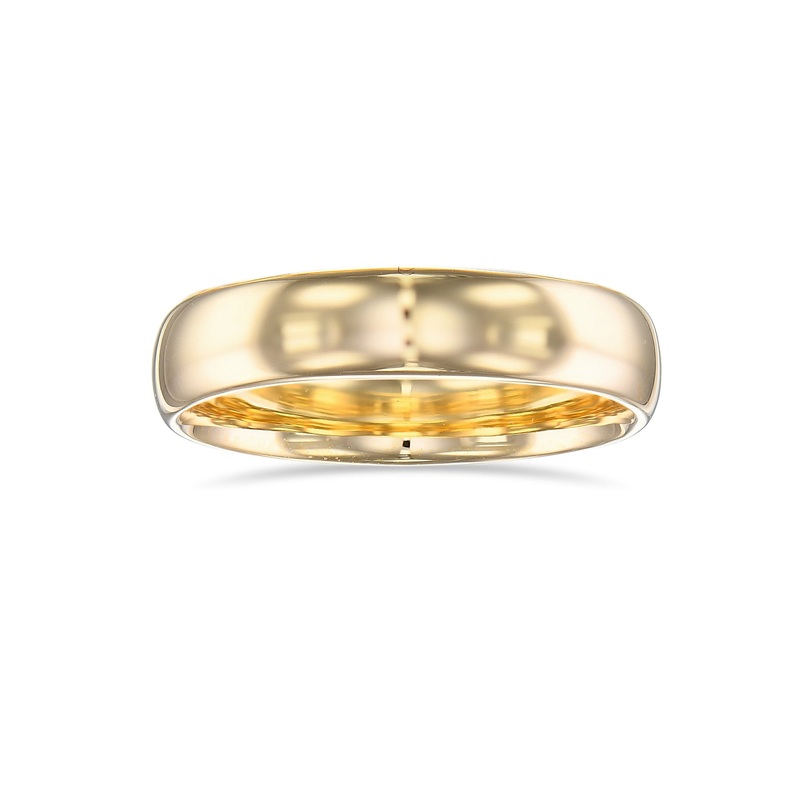 A classic 18K yellow gold Comfort Fit domed wedding band.