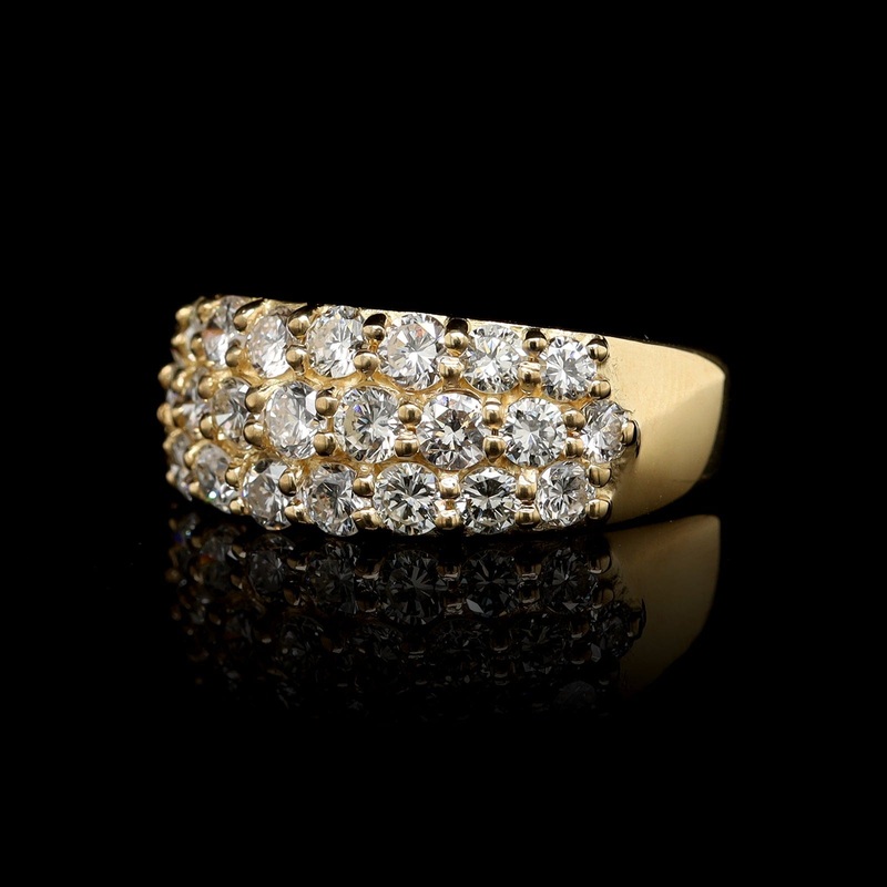 • 18K Yellow Gold Estate Diamond Three Row Ring