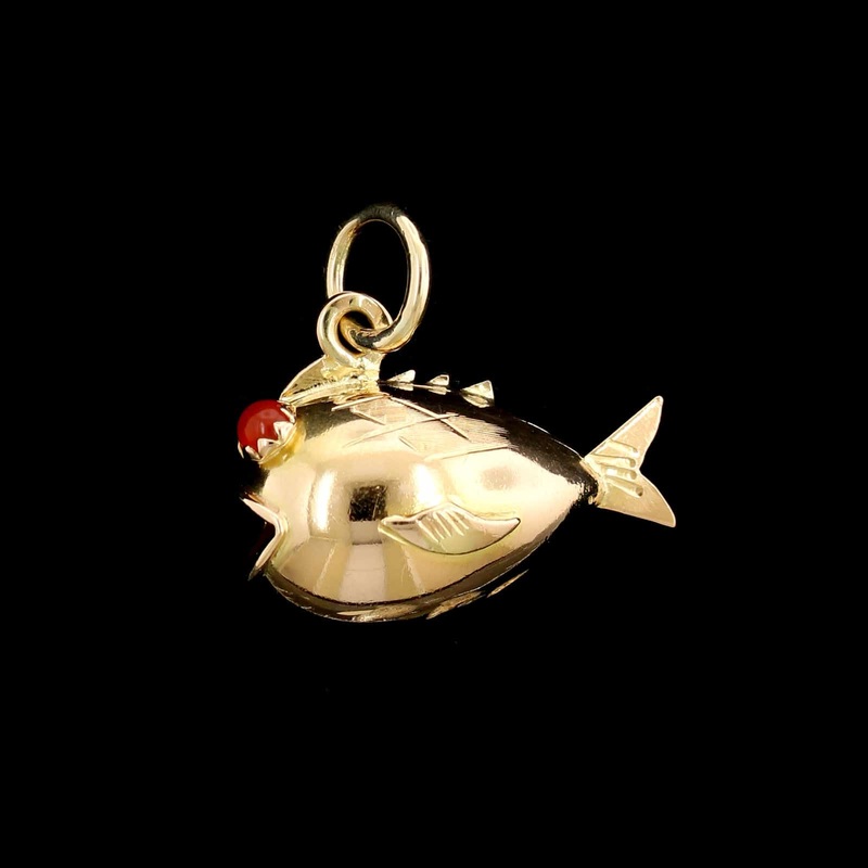 18K Yellow Gold Estate Fish CharmThe fish is set with glass accents eyesLength 3/4"