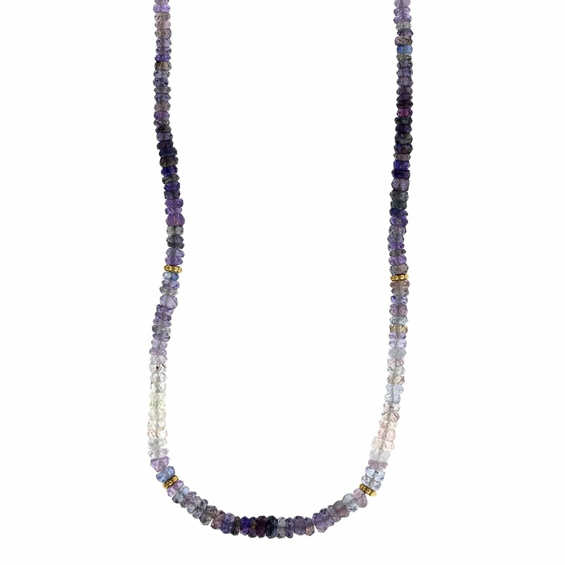 S99320120518K Yellow Gold Gradient Faceted Purple Sapphire Bead Necklace