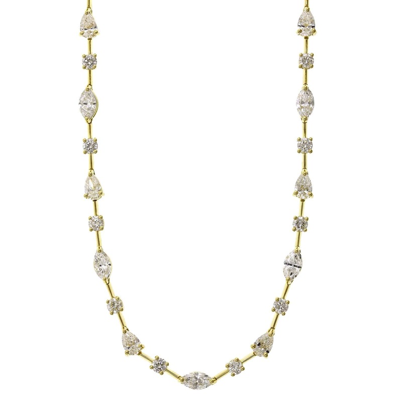 S99320423418K Yellow Gold Multi Shape Diamond Station Necklace