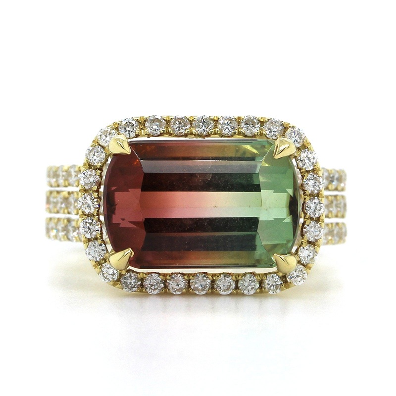18K Yellow Gold Tri Color Tourmaline Diamond Ring