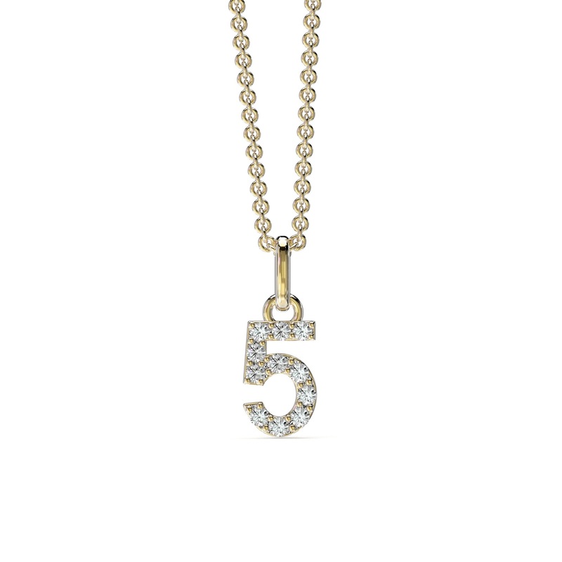 18KTyellow gold "petite"number "5" pendant.F-G color, VS clarityInitial Size: Approximately 5mm x 8mm (depending on the number)Chain not included.