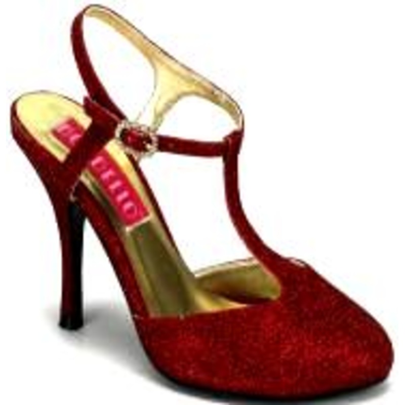 This T-Strap sandal shoe has a 3.5" heel, closed toe, and is covered in lots of shiny mini glitter.Burlesque Shoes/ Bordello Shoes /20's Flapper Shoe Violette;Color: Red-R, Green (Grn),Pink (Bp), Blue (Blu), Gold (G), Purple (Pur),Turquoise (Tur), Black (B