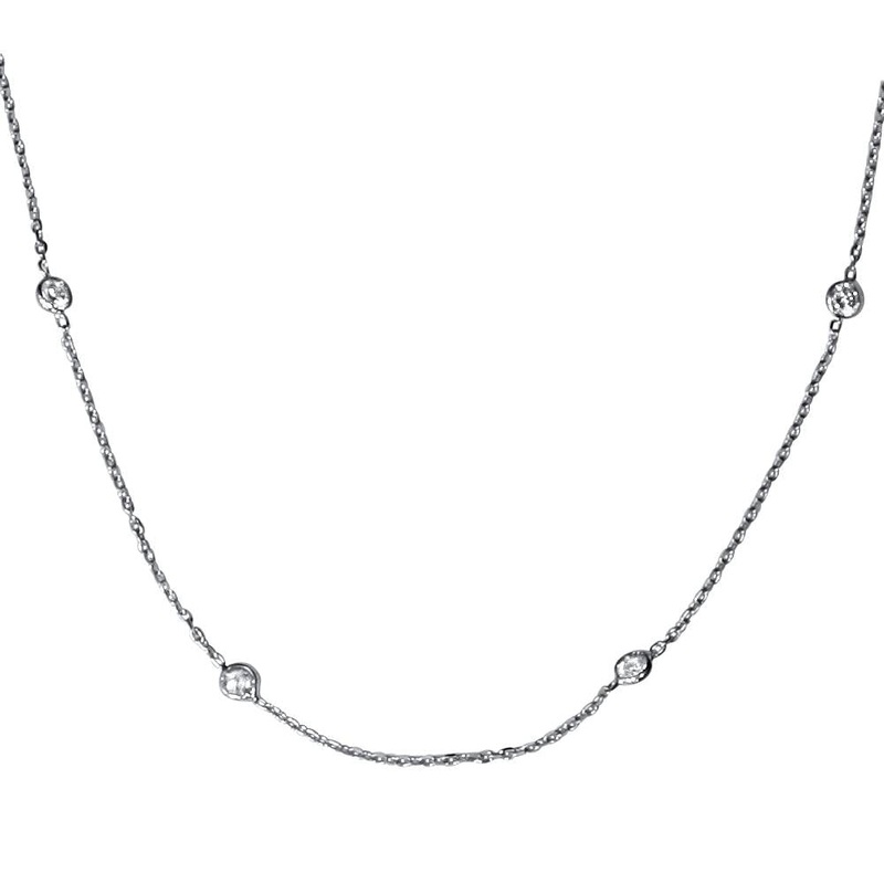 This high quality women's necklace features ten round brilliant cut natural diamonds All diamonds are bezel set in solid 14k white gold. The necklace is 18"Item #: DBY1CTWidth: 1 mmWeight: 2.5 gMetal: 14k White GoldDiamond Cut: RoundDiamond Color: G-HDiamo
