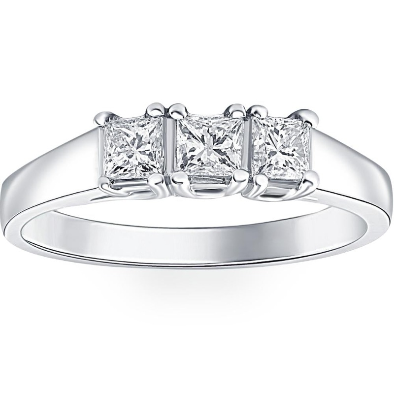 This stunning 1.00ct diamond ring has three princess cut diamonds set closely together forming a continuous band of diamonds.Item #: ENG2050Width: 3.5 mmWeight: 3.5 gMetal: 14k White GoldDiamond Cut: PrincessDiamond Color: H/IDiamond Clarity: I1Diamond Car