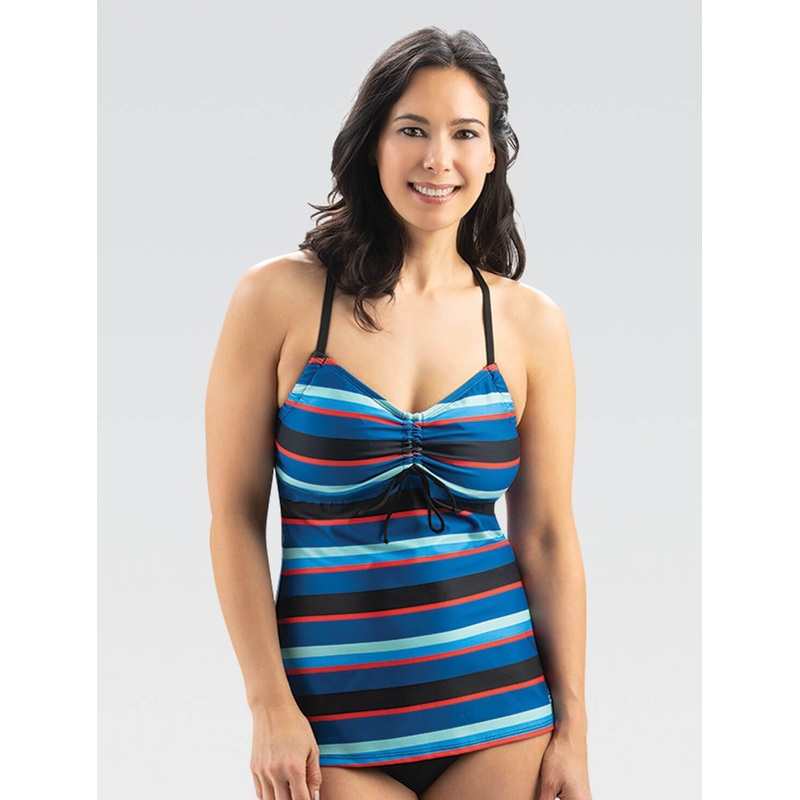 Transform your look with the Aquashape Blue Multi Stripe Tie-Front Tankini Top. Designed with supportive characteristics like removable cups and adjustable straps, this tankini top features a tie in front to finish off your style.