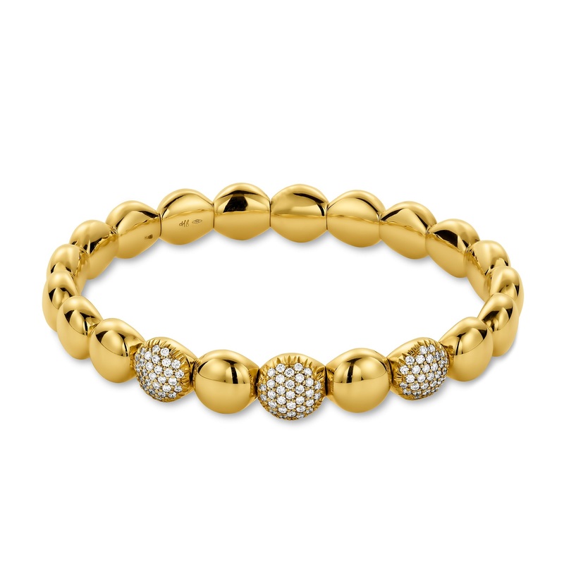 18KT polished yellow gold stretch bracelet with 3 sections set with 93 pav diamonds, 0.67ct. total weight.