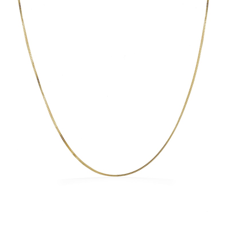 14K Yellow Gold Diamond Cut Franco Chain. The chain measures approximately 22″ in length and approximately 1.0mm in width.