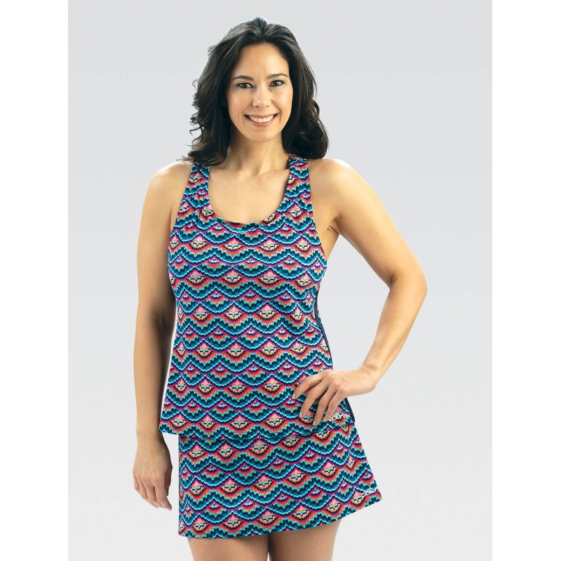 Swim laps or lounge by the pool in the Aquashape Feathers Racerback Tankini Top. The sporty look and feel will have you excited for your next activity!