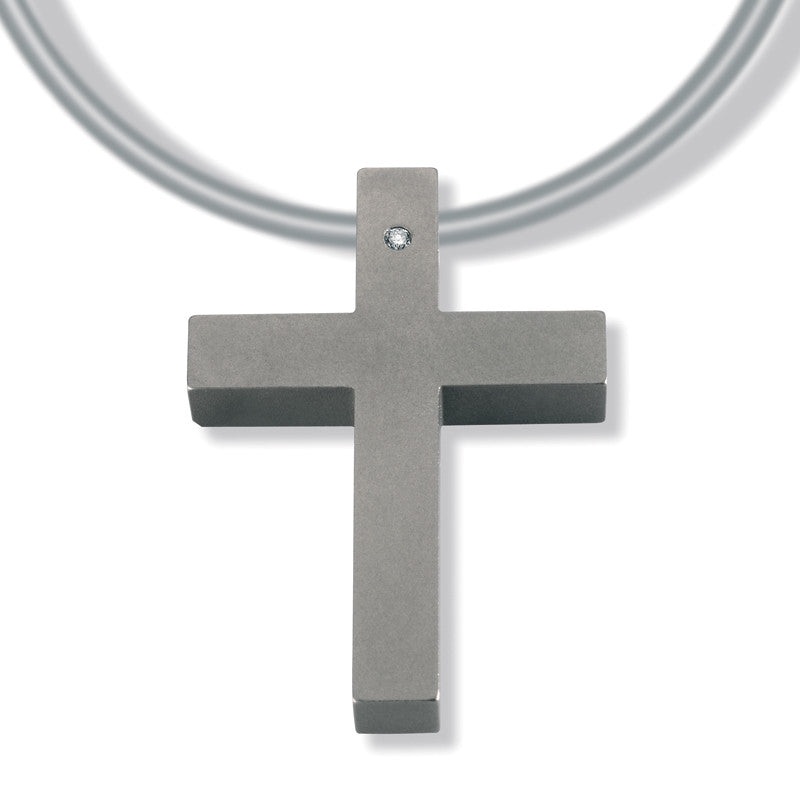 Titanium Cross Pendant, matte finish, set with a 0.02ct. Diamond on the top.