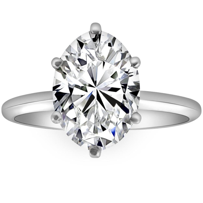 This stunning womens engagement ring features a large 3ct oval brilliant cut certified lab grown diamond. The diamond is prong set in solid platinum high polished mounting. Finger size 7 only. IGI certificate is included.Item #: BDENG51063109Width: 2 mmWei