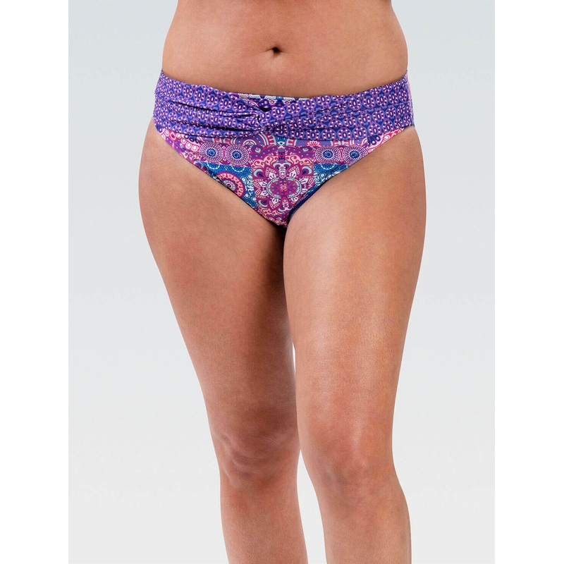 Limited Availability, get it while it lasts!This product is FINAL SALE and cannot be returned.This contemporary cut swim bottom is flattering and comfortable. Complete in the Patchwork print, this pink and purple brief is mid-rise and features a twist-fron