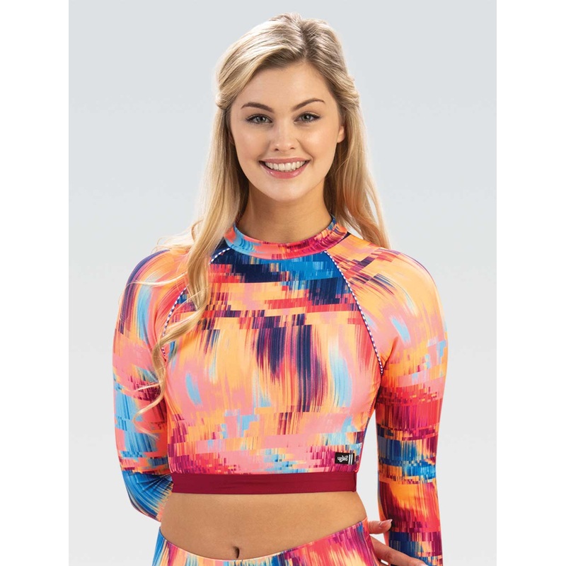 Limited Availability, get it while it lasts!This product is FINAL SALE and cannot be returned.Great prints are the stuff dreams are made of. The Womens Uglies Revibe Technicolor Dreams Cropped Mock Neck Rash Guard brings the best of our dreams to our wakin