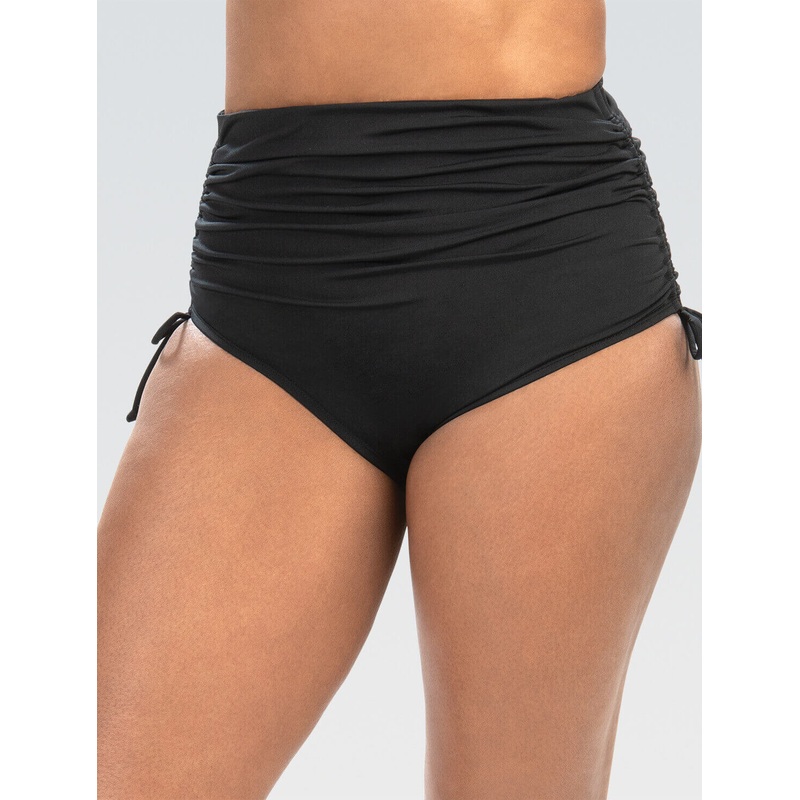 Fabric Benefits: Chlorine and pilling resistant Stretch recovery and shape retention UPF 50+ Protection from the sunDesign Features:Solid black suit bottom Moderate Fit: Fits securely below the hip for more coverage High Rise Engineered to fit tightly to t