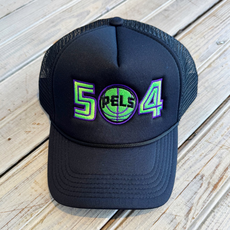 504 Pels Trucker Hat in Black.New Orleans Pelicans Adult Adjustable Hat.