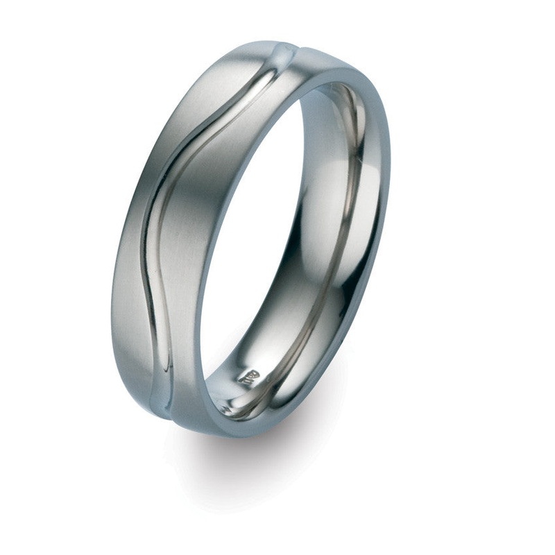 TeNo Titanium brushed ring with polished curvy line.