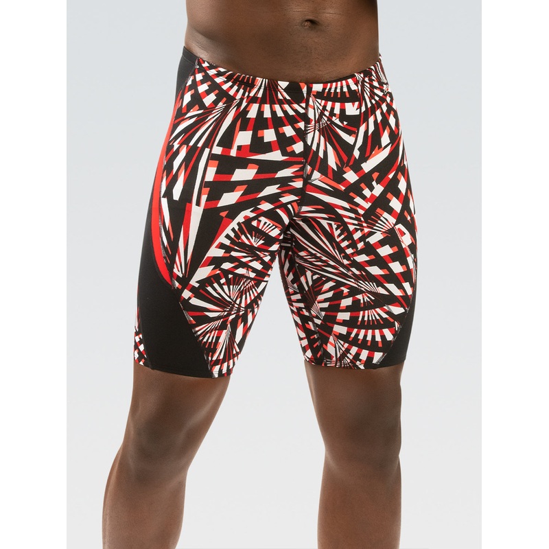 Limited Availability, get it while it lasts!This product is FINAL SALE and cannot be returned.Feel like royalty as you pass by the competition in this Atomic Red Printed Color Block Jammer Swimsuit for men. Features & Benefits:Our most reliable fabric for