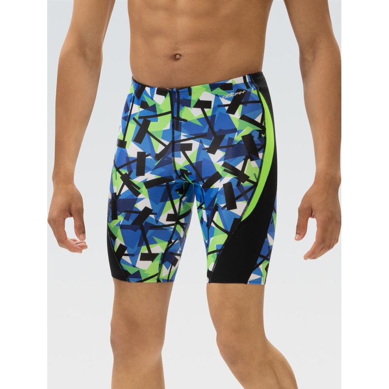 Limited Availability, get it while it lasts!Conquer the water in the Reliance Men's Color Block Jammer showcasing the vibrant Razor Blue and Green design, tailored for in-season swim meets. Crafted from our most reliable fabric, this jammer boasts durable