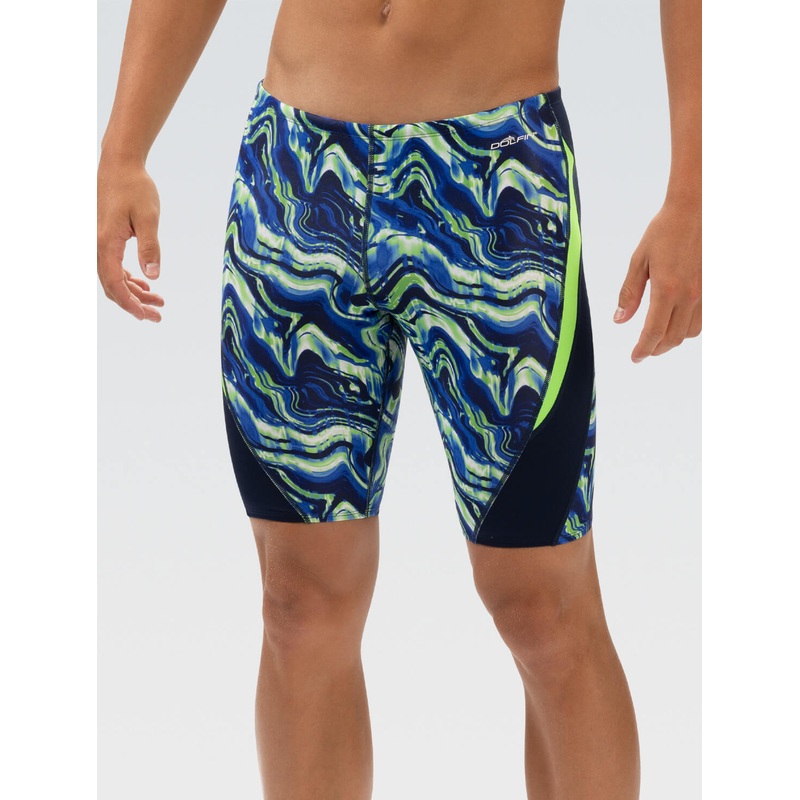 Embrace the challenge with the Reliance Men's Blaze Blue and Green Color Block Jammer, designed for resilience and power in the water. This two-year suit is crafted from our most reliable 100% polyester fabric, ensuring robust durability and exceptional sh