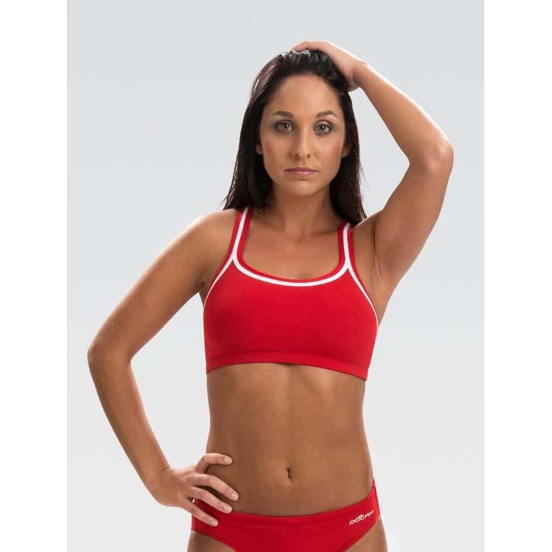 STYLE: Bikini Top. GREAT DETAILS: Get the job done at the pool or beach in this scoop-neck, solid red top with white accents. PERFECT FIT & FEEL: Stay comfortable on duty with fully-lined, 100% polyester. NOTE: Guard logo customization available.