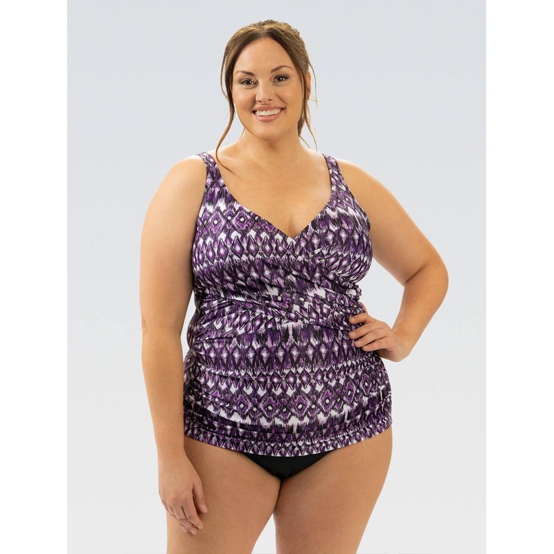 Top off your look with this new Globetrotter print, wrap front tankini top! The adjustable straps provide customized coverage and a flattering fit. Whether you’re lounging on the beach or splashing in the waves, this tankini is the perfect choice for a stylish and practical summer look!