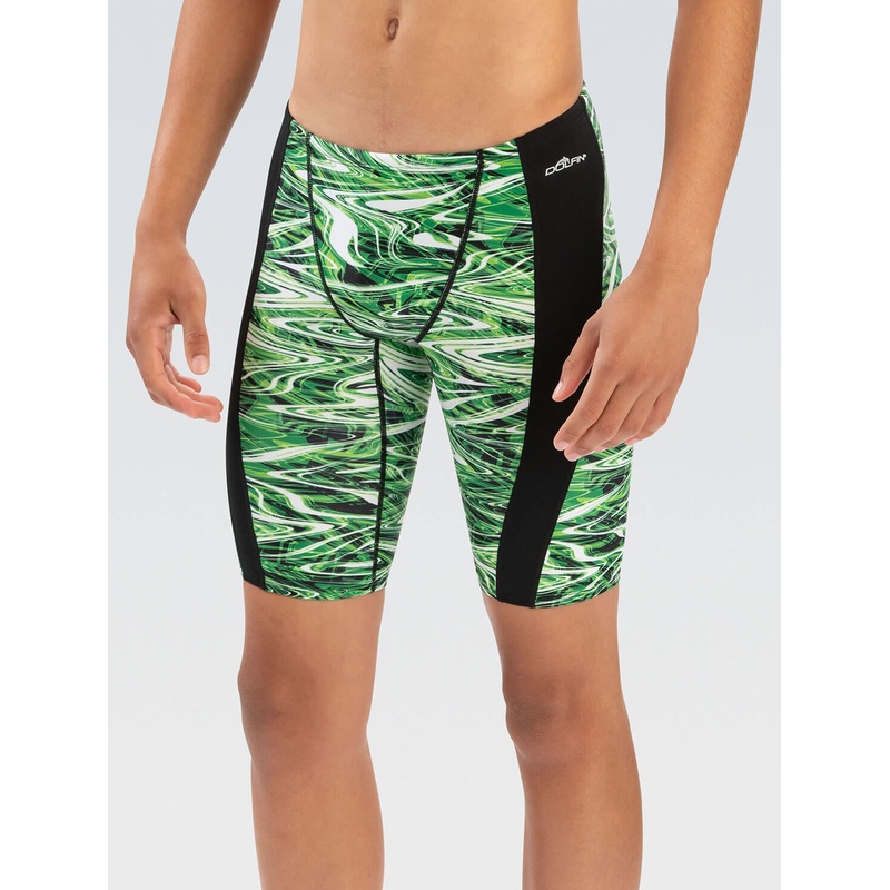 Limited Availability, get it while it lasts!This product is FINAL SALE and cannot be returned.A jammer swimsuit for the undefeated. Complete in a fierce and wicked pattern with a team color of green, this Jet Stream spliced jammer for men is one-of-a-kind