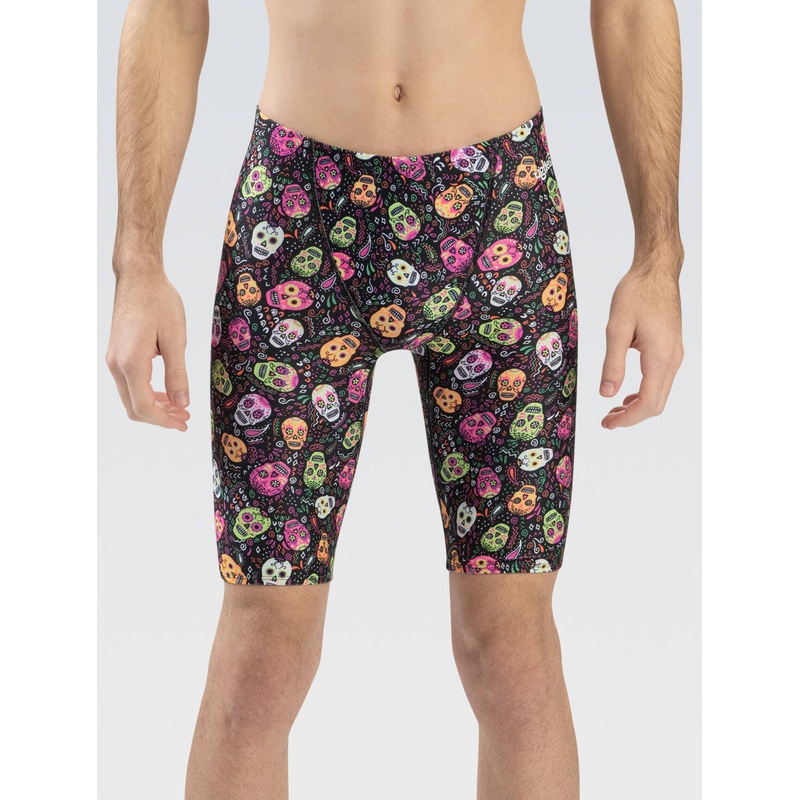 Limited Availability, get it while it lasts!This product is FINAL SALE and cannot be returned.Knock em dead in these Crossbones print mens jammer from Uglies! With chlorine resistant fabric to keep the colors glowing after hours in the pool and a long-last