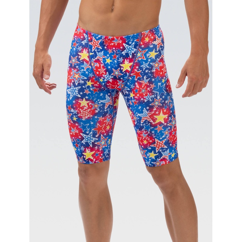 Limited Availability, get it while it lasts!Dive into fun with the Uglies Celebrate Jammer, designed to bring out your vibrant personality! Featuring a lively tie-dye print adorned with stars and stripes, this jammer is perfect for making a splash at the p