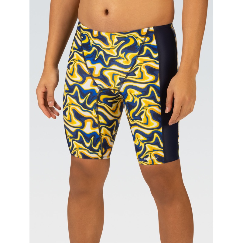 Limited Availability, get it while it lasts!This product is FINAL SALE and cannot be returned.There's no goal you cant achieve in this navy and gold jammer, featuring our new surge print and muscle control technology this competition suit is a must have. F