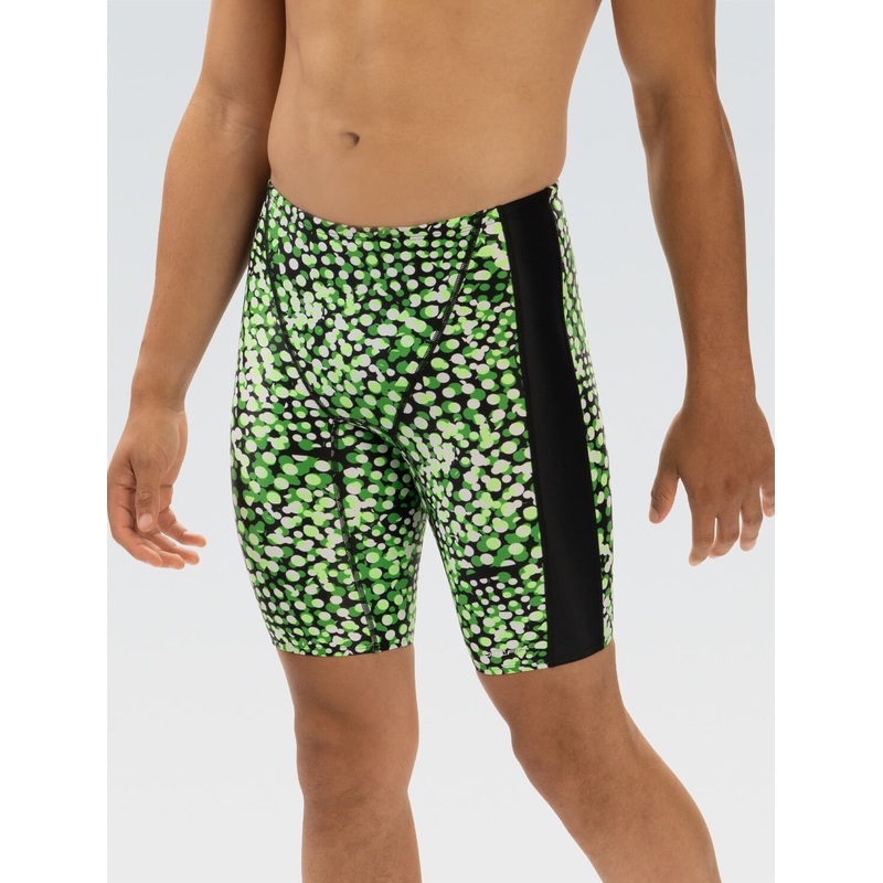 Limited Availability, get it while it lasts!Experience comfort and style with the XtraSleek Men's Spliced Jammer in the vibrant Propel Green design. Ideal for swim meets, this jammer features a two-way stretch fabric with shape retention for flexibility an