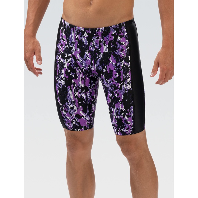 Get ready to make a statement with the XtraSleek Breaker Purple Spliced Jammer, the ultimate blend of style and performance for competitive swimmers. This jammer features a geometrical, vertical cage Breaker print that not only stands out but also helps minimize drag, allowing you to glide through the water with ease. Crafted from durable recycled nylon and spandex, it offers superior two-way stretch for a snug, flexible fit that moves with your every stroke. The front panel liner and drawcord provide added security, ensuring you stay comfortable and focused during your training and races. With UPF Protection and chlorine resistance, the Breaker Purple Spliced Jammer is designed to keep you looking great and performing at your best in every swim!