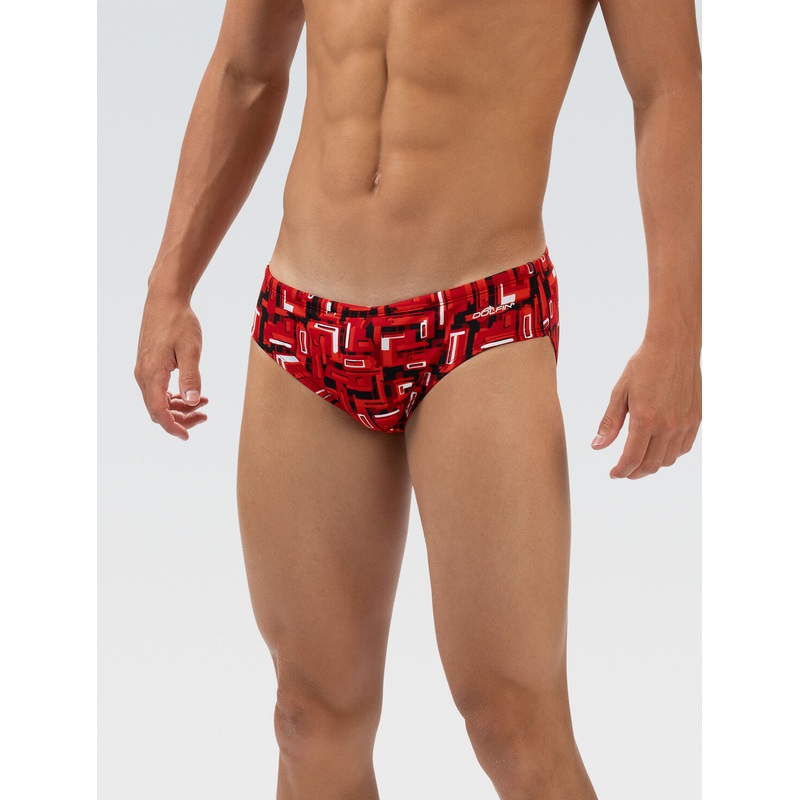 Achieve unmatched performance with the Reliance Men's Bionic Red Racer with a geometric, schematic print. Engineered with our most reliable fabric tested for over 300+ hours of chlorine exposure, this racer also offers a two-way stretch for optimal shape r