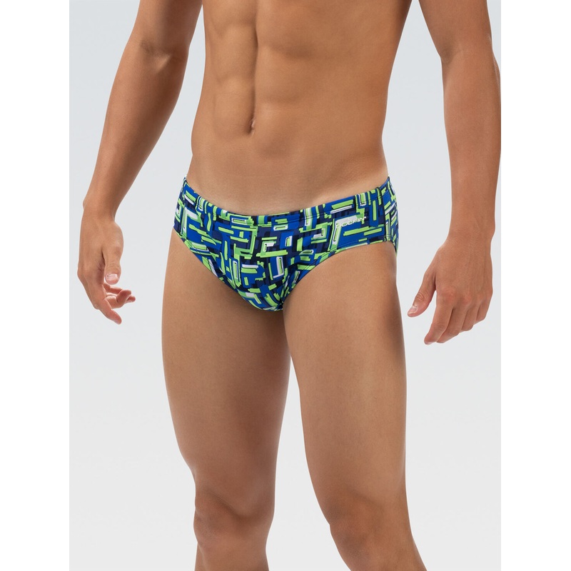 Gain a competitive edge with the Reliance Men's Bionic Blue and Green Racer, expertly designed for high-performance swimming and featuring a cityscape inspired print. Crafted from our most durable fabric tested for over 300+ hours of chlorine exposure, thi