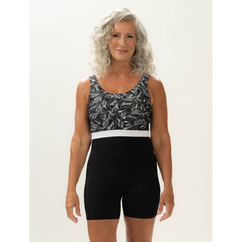 Dive into style with our Oasis Print Scoop Neck Aquatard! The black and white upper with a white waistline creates a contouring contrast, while the scoop neck front and back create an easy on and easy off wear. Enjoy the ease of thicker, supportive straps and an easy on-off style that provides full coverage.