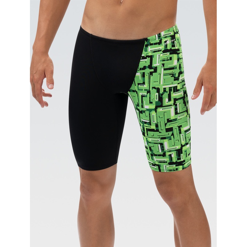 Crafted from durable two-way stretch fabric, the Reliance Men’s Bionic Green Asymmetrical Jammer ensures vivid color retention, resisting fading and running, while exceptional shape retention supports lasting performance. With UPF 50+ protection, youre shielded from harmful UV rays, allowing you to focus on your swim without worry. Engineered for minimal drag and optimal fit, this high-performance jammer empowers swimmers of all levels to push their limits and achieve peak competitive results.
