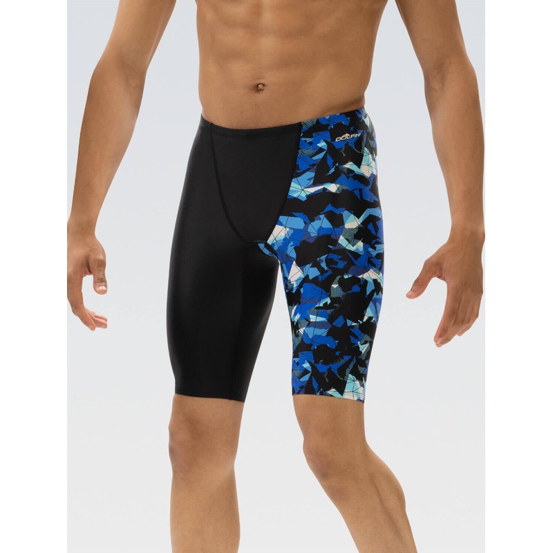 Resistant to chlorine and pilling, it provides UV protection and guards against oil and sunscreen. The Implode blue jammer with black side panel detail offers a bold and stylish look. Equipped with a drawcord for security and a front panel liner for added comfort, this XtraSleek mens jammer is your ideal companion for in-season swim meets.