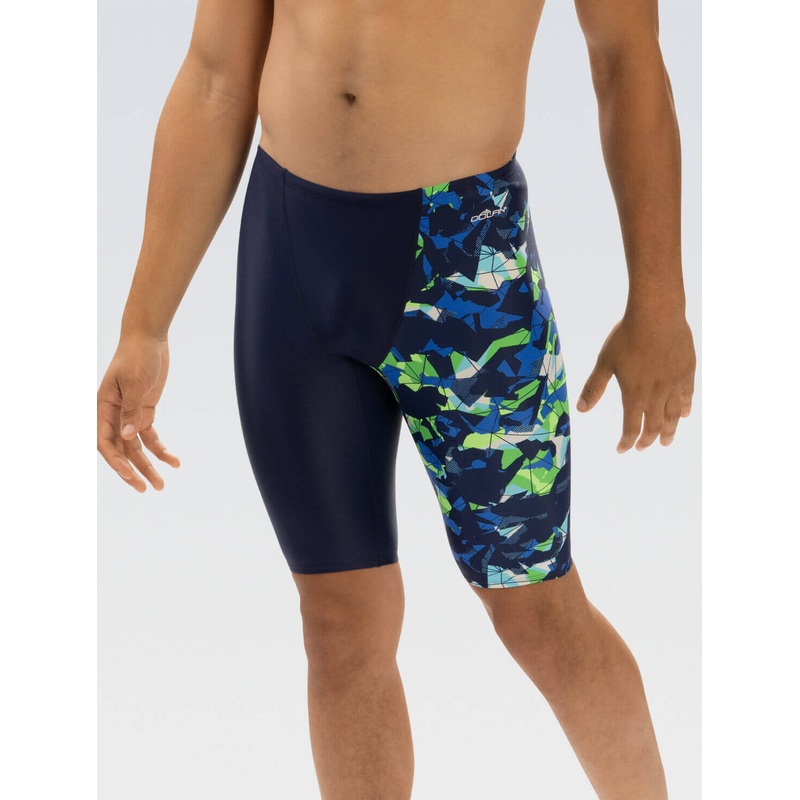 Limited Availability, get it while it lasts!Step into excellence with the XtraSleek Men's Asymmetrical Jammer in this awesome Implode Blue and Green design, a new camo print with a digital ombre effect. Crafted from recycled materials, this jammer combines