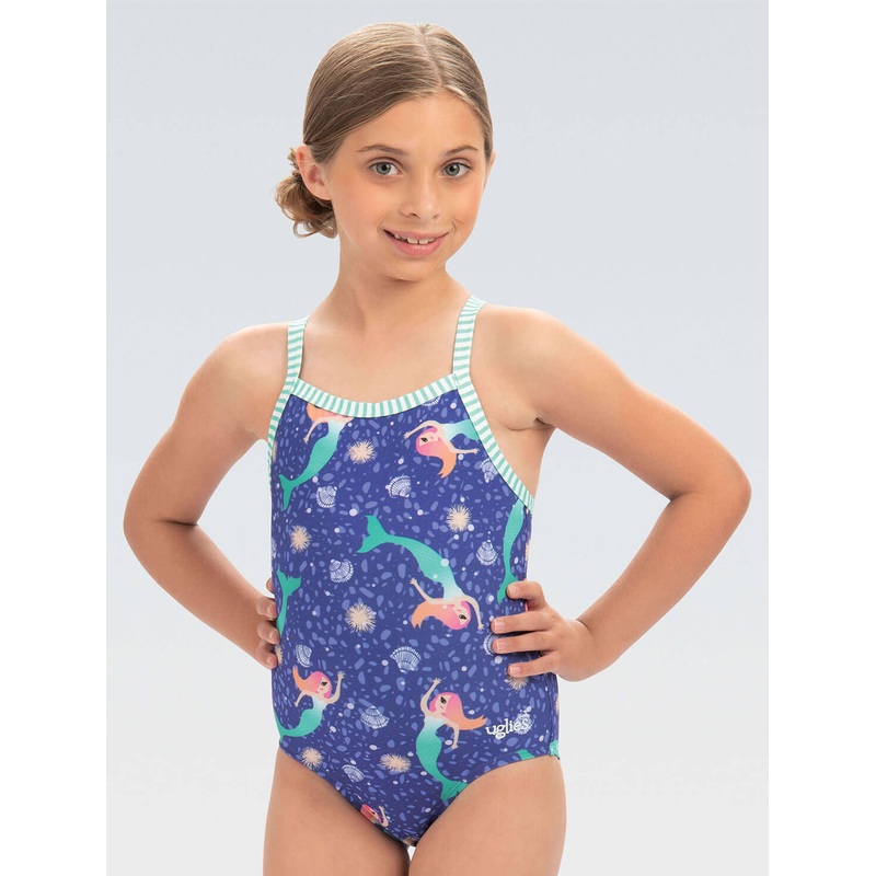 This Mermaid printed swimsuit is perfect for a girl learning how to master those water moves! With signature candy stripe binding and crisscross back straps! Suit up and feel your best!Features & Benefits:Fabric designed with comfort and fit in mindChlorin