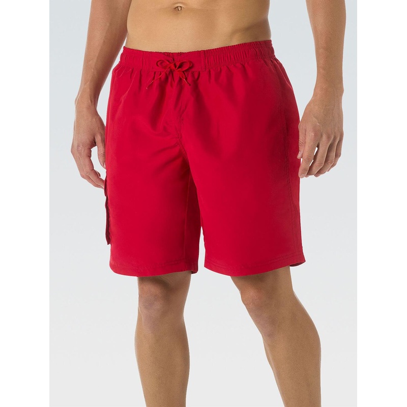 STYLE: Classic Board Shorts. GREAT DETAILS: Try out one of our best selling shorts in solid red. The 9" inseam length and easy elastic waist bring comfort so you can have fun in the sun. PERFECT FIT & FEEL: Featuring an internal drawcord for added security
