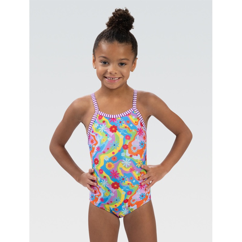 Limited Availability, get it while it lasts!Let your little one shine bright in our delightful Little Dolfin Buttercup One Piece Swimsuit! Featuring a vibrant retro swirl design adorned with cheerful colors and flowers, this swimsuit is sure to bring a smi