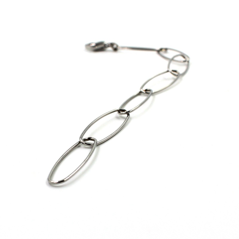 Polished stainless steel long oval shaped link bracelet with lobster clasp.Made in Germany.Links measure 8.9mm x 25mm