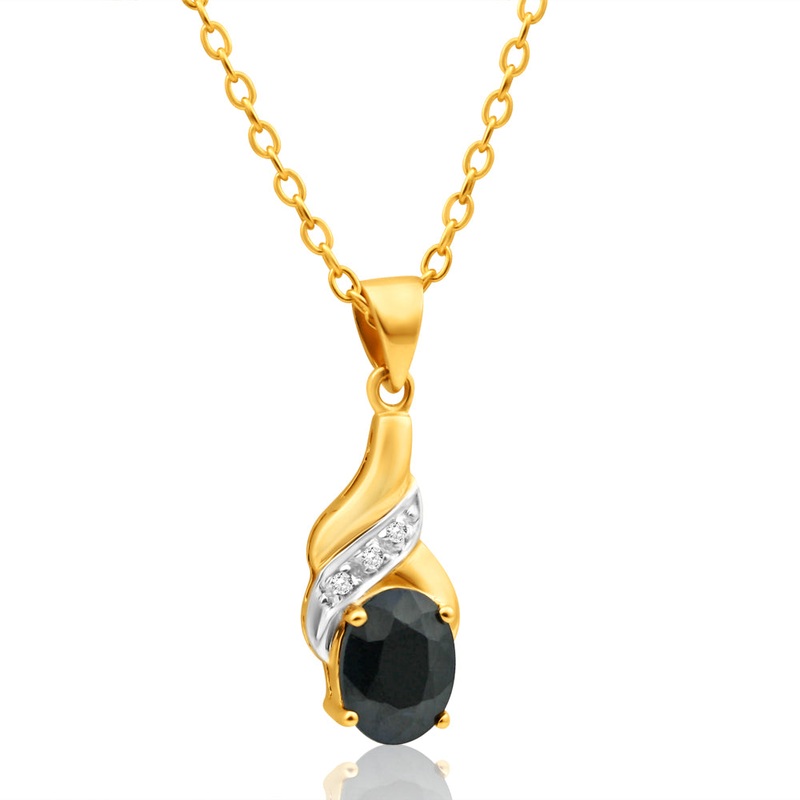 Be the first to review “9ct Charming Yellow Gold Natural Black Sapphire 8x6mm and Diamond Pendant”