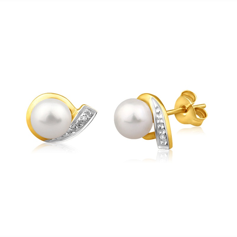 9ct Dazzling Yellow Gold Diamond + Freshwater Pearl Stud Earrings