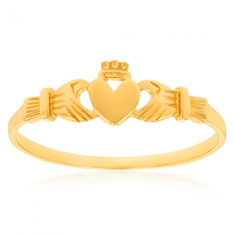 Set with the Claddagh symbol of two hands, a heart and a crown this all gold ring is a beautiful and unique dress piece. This old Irish sign signifies friendship, love and loyalty which makes it a perfect gift for a special friend or love.