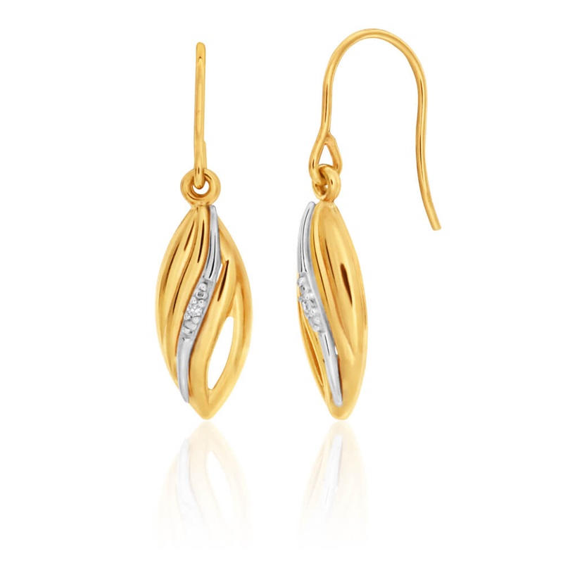 A jewellery wardrobe must-have, these 9ct Elegant Yellow Gold Diamond Drop Earrings are stunning. Crafted in quality yellow gold with warm hues that are especially stunning, these drop earrings are perfect for any occasion. The pendant features a swirling design complete with a strip of white gold, embellished with the sparkle of diamonds, you are sure to dazzle from every angle. Whether you are going to a formal event, or the office, this piece is a real showstopper, that will elevate any look.