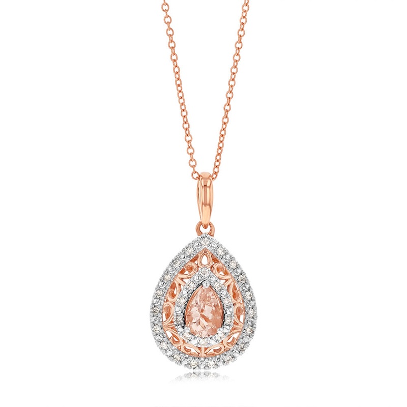 9ct Rose Gold Diamond And Oval Morganite Pendant