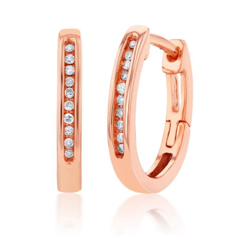 Sweet and dainty, these gorgeous 9ct Rose Gold Hoop Earrings with 20 Brilliant Cut Diamonds will add a touch of panache to any outfit.